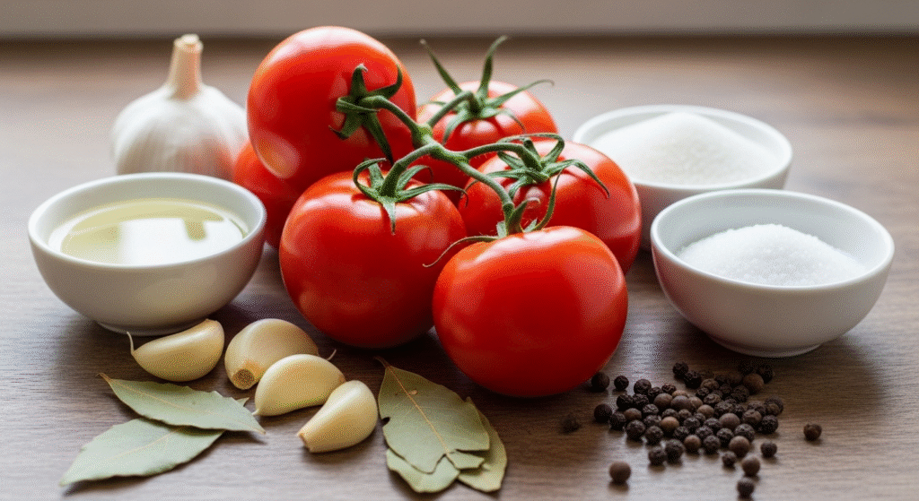 Для приготовления быстрых маринованных помидоров за 1 день понадобятся: