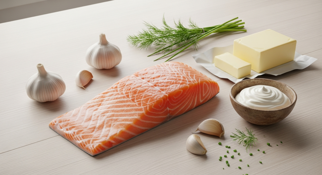 Ингредиенты для лосося в сливочном соусе в мини-стаканчиках