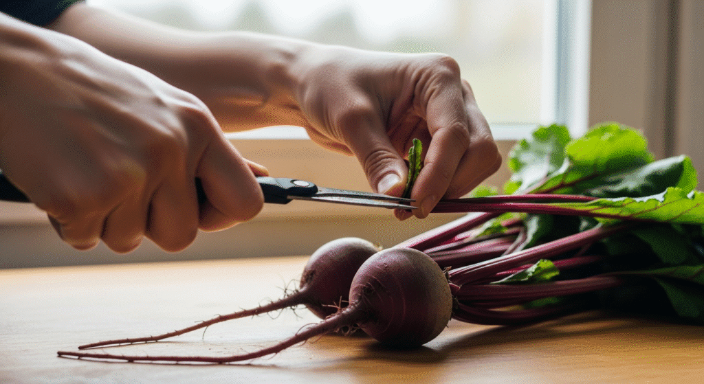 Убирайте свеклу в сухую погоду. Затем аккуратно стряхните землю и обрежьте ботву, оставив около 2 см. Такой способ предотвращает потерю сока. После этого просушите урожай в тени. Важно обеспечить вентиляцию. Однако мыть корнеплоды нельзя, потому что влага ускоряет гниение.