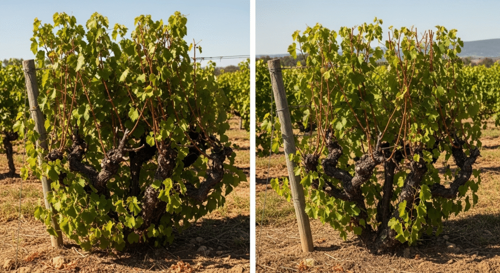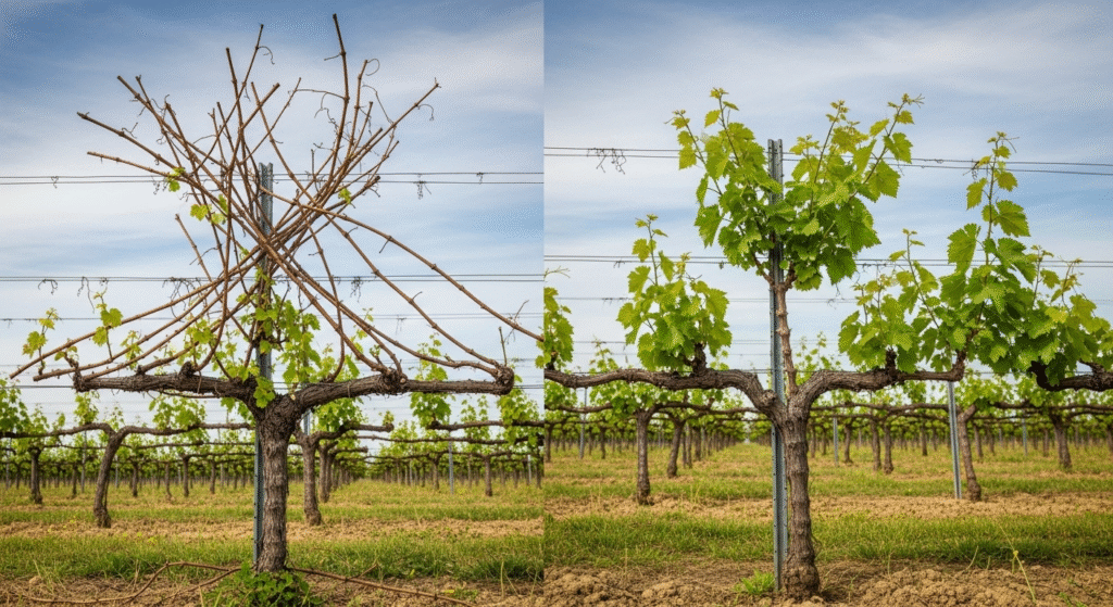 Главная иллюстрация статьи — обрезка винограда на солнечном участке.