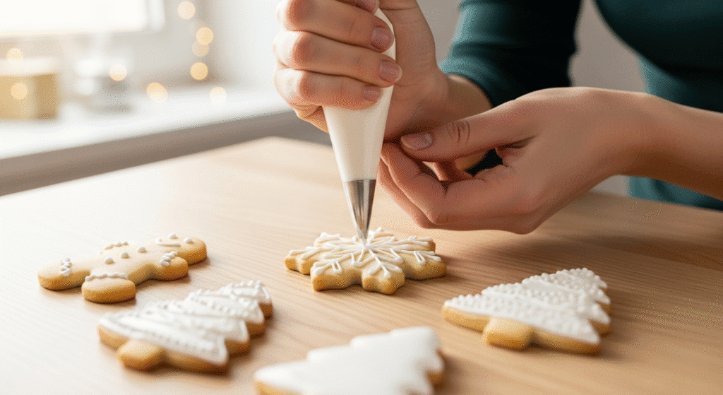 - Кондитерские насадки: тонкие линии, надписи, снежинки — используйте насадки №1–3.