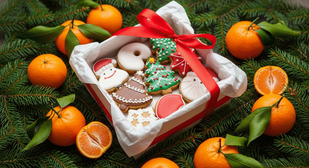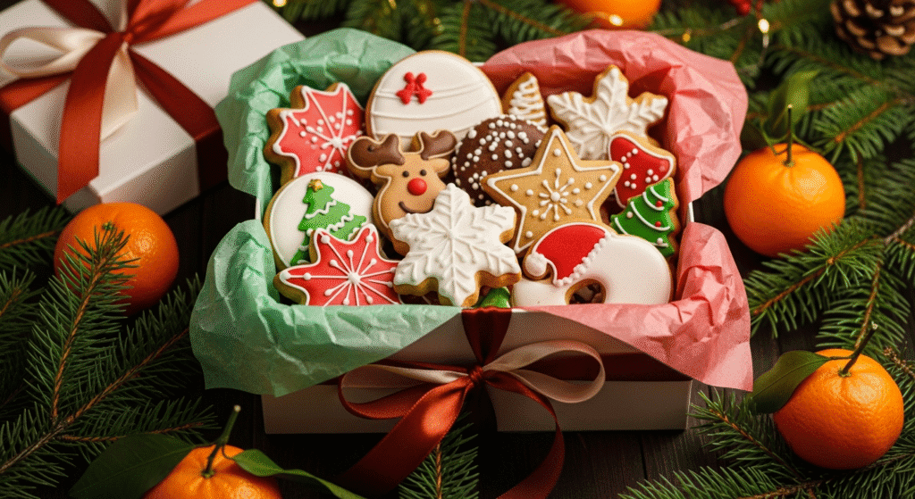 Храните готовое печенье в герметичных контейнерах при комнатной температуре, перекладывая слои пергаментом. Избегайте влажности — она размывает глазурь. Если планируете дарить печенье, используйте коробки с окошком и ленточкой — это сделает упаковку праздничной и сохранит свежесть.
