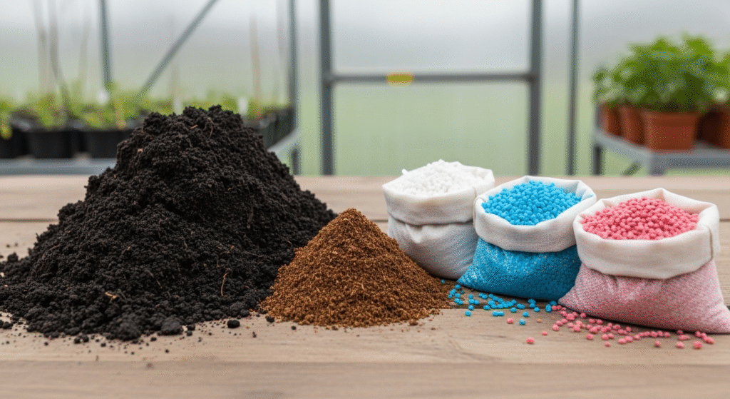 Для подкормки помидоров в теплице подходят органические и минеральные удобрения. Органика улучшает структуру почвы и насыщает её микроэлементами, а минеральные комплексы стимулируют рост и плодоношение. Азот нужен для зелёной массы, фосфор — для корней, калий — для формирования плодов. Выбор удобрения зависит от сорта томатов и состояния почвы.