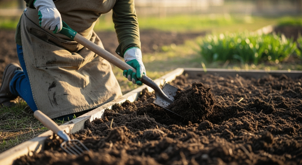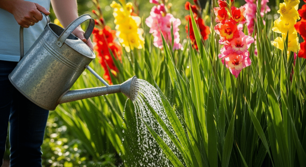 Перед посадкой гладиолусов важно правильно подготовить участок. Уберите сорняки, камни и корни. Почву перекопайте на глубину около 25 см. Добавьте перегной и минеральные удобрения с калием и фосфором. Это улучшит питание и укрепит растения.