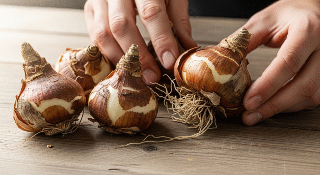 Качественные луковицы — залог обильного цветения. Выбирайте плотные, сухие, без пятен и плесени. Мягкие или повреждённые экземпляры не подходят. Кроме того, не берите слишком мелкие луковицы — они слабее и позже зацветают.