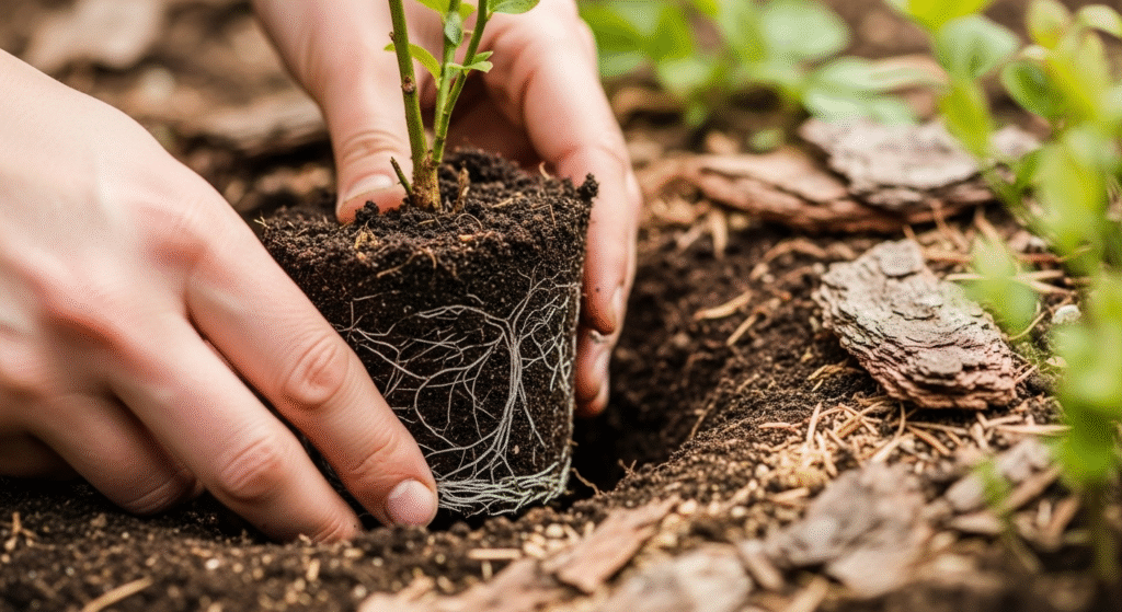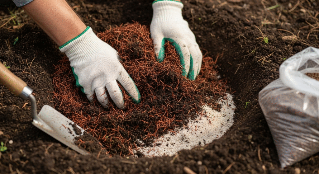 - Мульчирование — помогает сохранить влагу, подавить сорняки и стабилизировать кислотность.