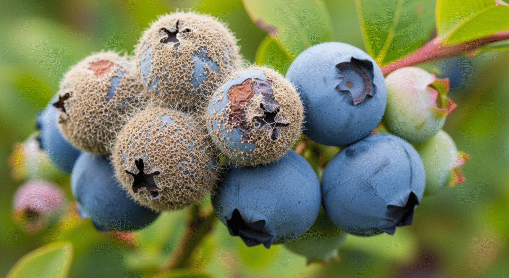 Голубика подвержена грибковым заболеваниям: серой гнили, антракнозу, мучнистой росе. Для профилактики важно обеспечить хорошую вентиляцию кустов, не допускать переувлажнения и обрабатывать растения фунгицидами ранней весной и осенью.