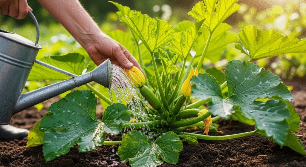 Подготовка почвы — первый шаг к успешному выращиванию кабачков. Перед посадкой нужно глубоко вспахать землю и удалить сорняки. Внесите комплексное удобрение с азотом, фосфором и калием — это поможет растениям хорошо развиваться. Мульчирование грядок сохраняет влагу и снижает рост сорняков. Регулярный полив особенно важен в период формирования плодов: он обеспечивает их здоровый рост и улучшает вкус кабачков.