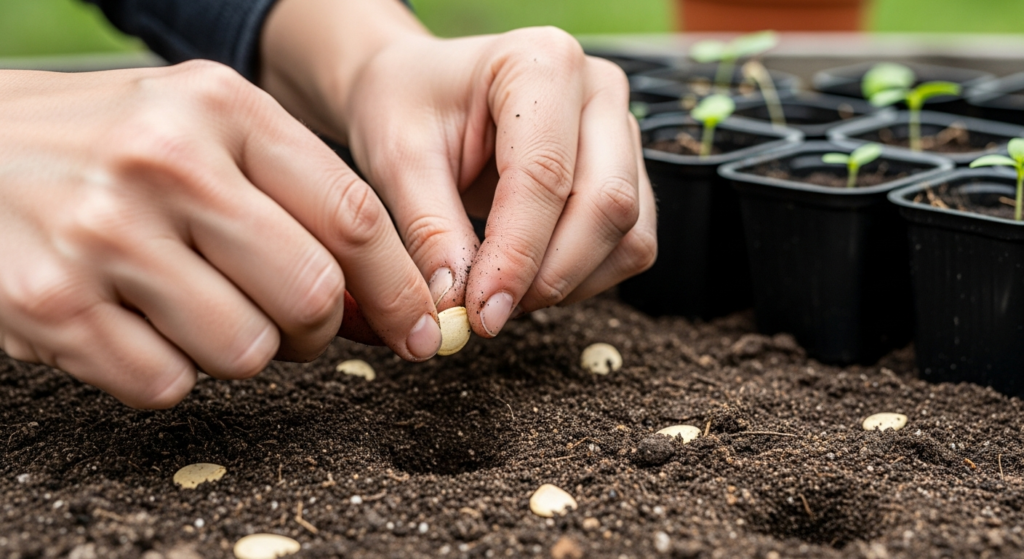 Для получения более раннего урожая используют рассадный способ. Семена высевают в отдельные ёмкости в начале мая. Оптимальная температура для прорастания — 20–25 °C. Рассаду регулярно поливают, не допуская переувлажнения, и обеспечивают хорошее освещение. После появления 2–3 настоящих листьев растения можно высаживать в открытый грунт.